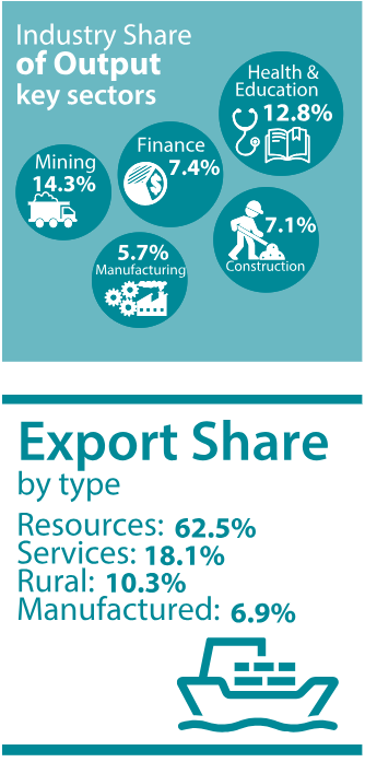 这也和我们对澳洲的普遍印象一致,说起澳大利亚的特产或是和中国的经贸往来,无非就是矿产资源,对消费者而言,则是牛肉龙虾、水果、奶制品、绵羊油、羊毛制品,有时成为外交工具的也正是这些东西,比如刚刚恢复零关税的红酒和去年才恢复的煤炭。而这些的确是当地经济支柱产业:农业、矿产、能源。